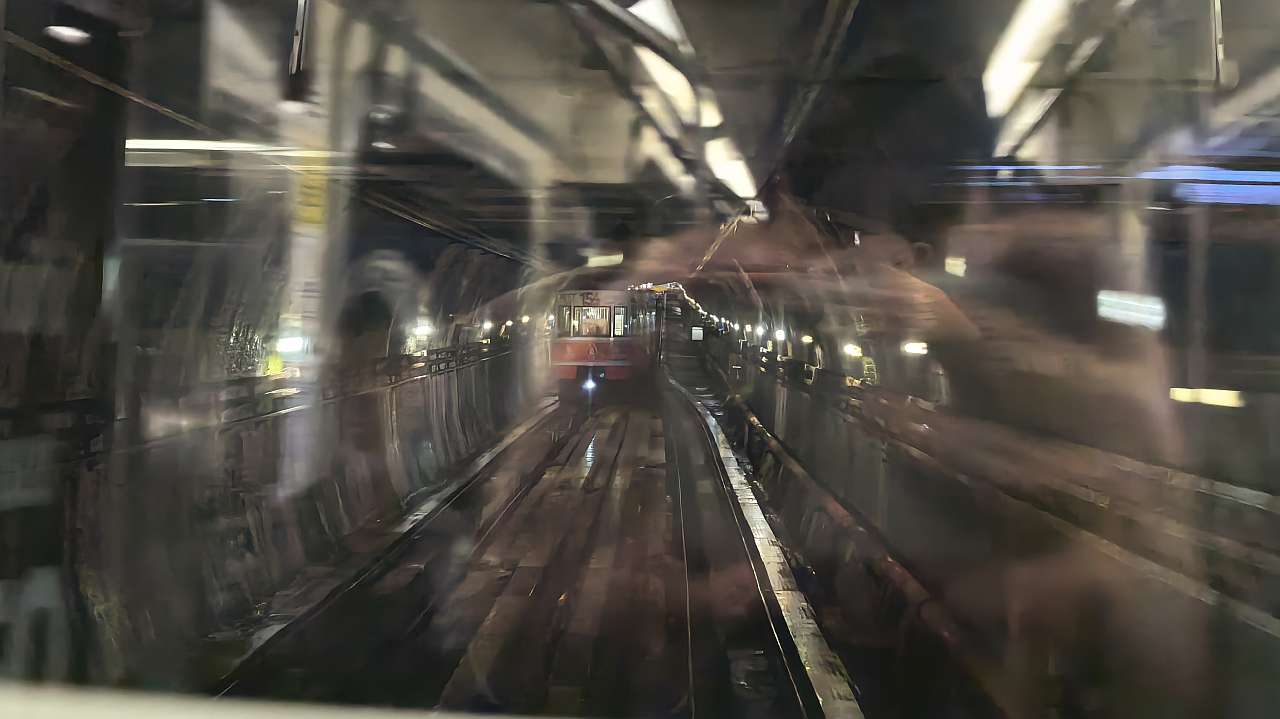 Actualul metrou, roșu, nu foarte lung, face cam în două minute distanța de parcurs. Așa că nu ai timp prea mult timp ca să te bucuri de o așa experiență. Dar a meritat, cu prisosință.