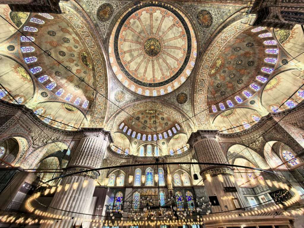 De ce se numește Moscheea Albastră? Pentru că impresionantul interior este decorat cu peste 20.000 de bucăți de faianțe albastre de İznik, cu motive florale și geometrice, iar lumina care pătrunde prin cele 260 de ferestre arcuite și cu vitralii amplifică această nuanță.