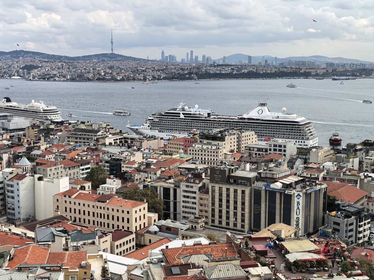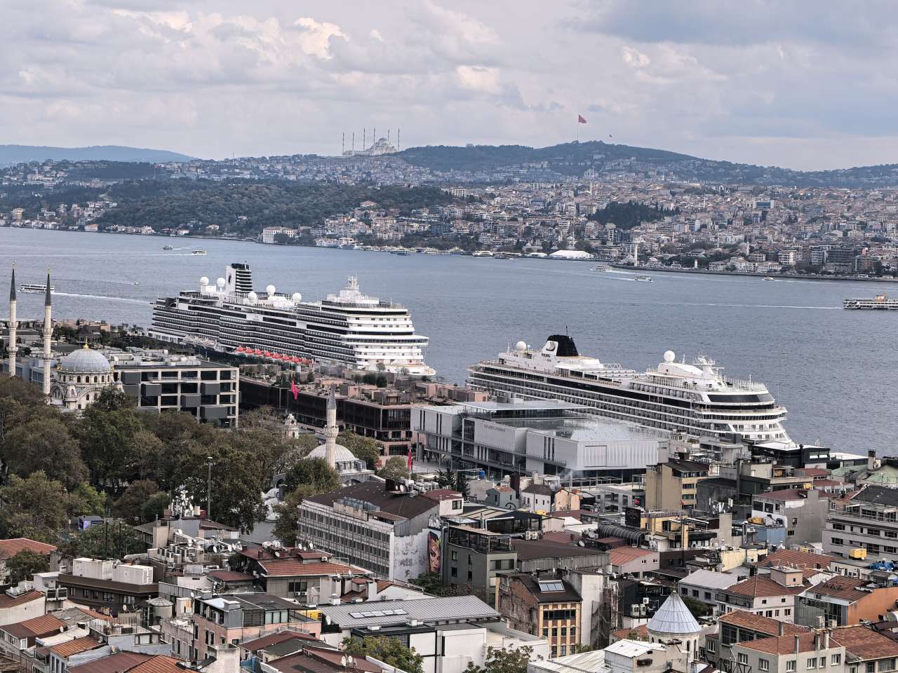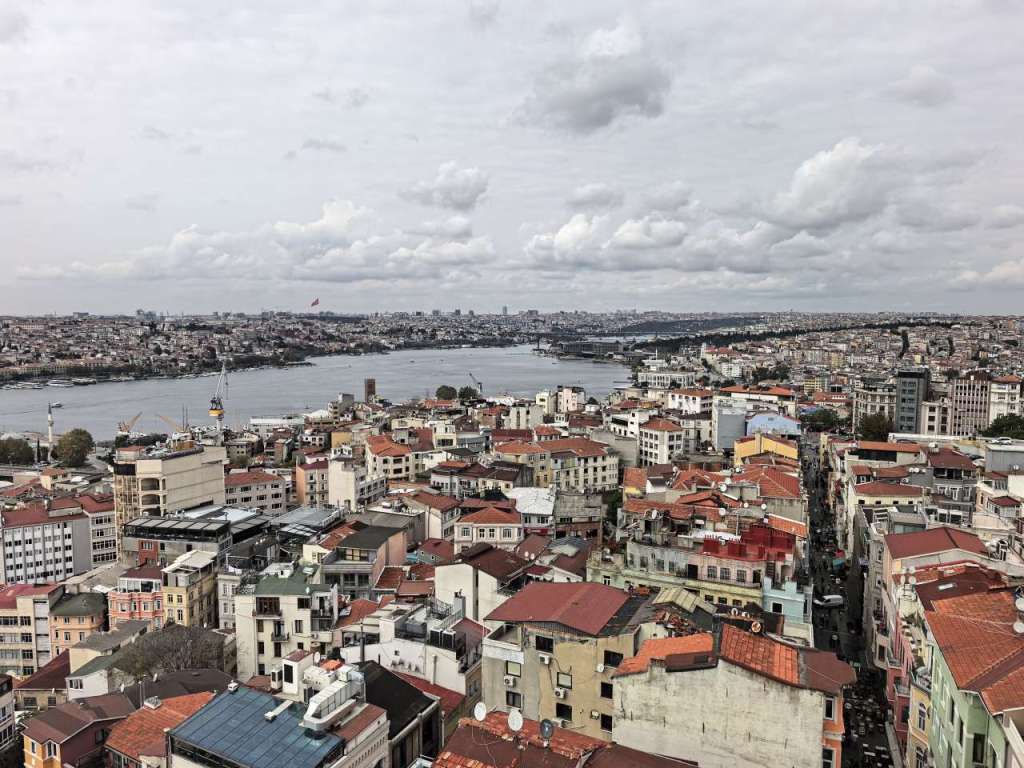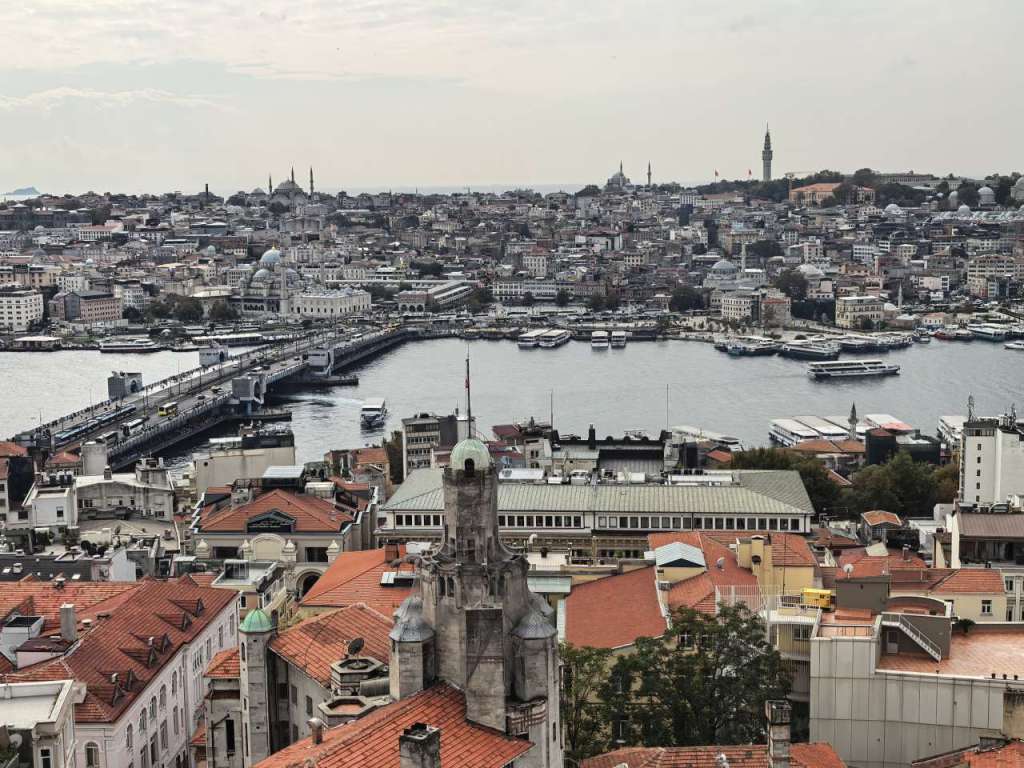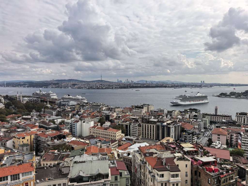 Ca să mă minunez, din nou, în Istanbul. Topkapi, Hagia Sofia și Moscheea Albastră, Podul Galata și Galataport, cu trei nave de croazieră andocate, Cornul de Aur, Bosforul și peste el malul asiatic, cu toate navele care mișunau aparent haotic, ba chiar și Marmaraua se vedea în depărtare, toate moscheile construite pe înălțimi, apeductul roman, cartierele din apropiere, cele din depărtare, zgârie-nori pe fundal, ți-am zis, vezi cât te duc ochii, e tot un spectacol, o panoramă.