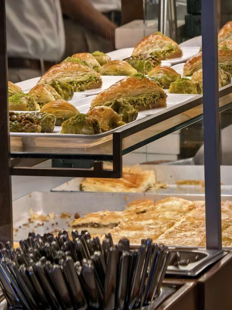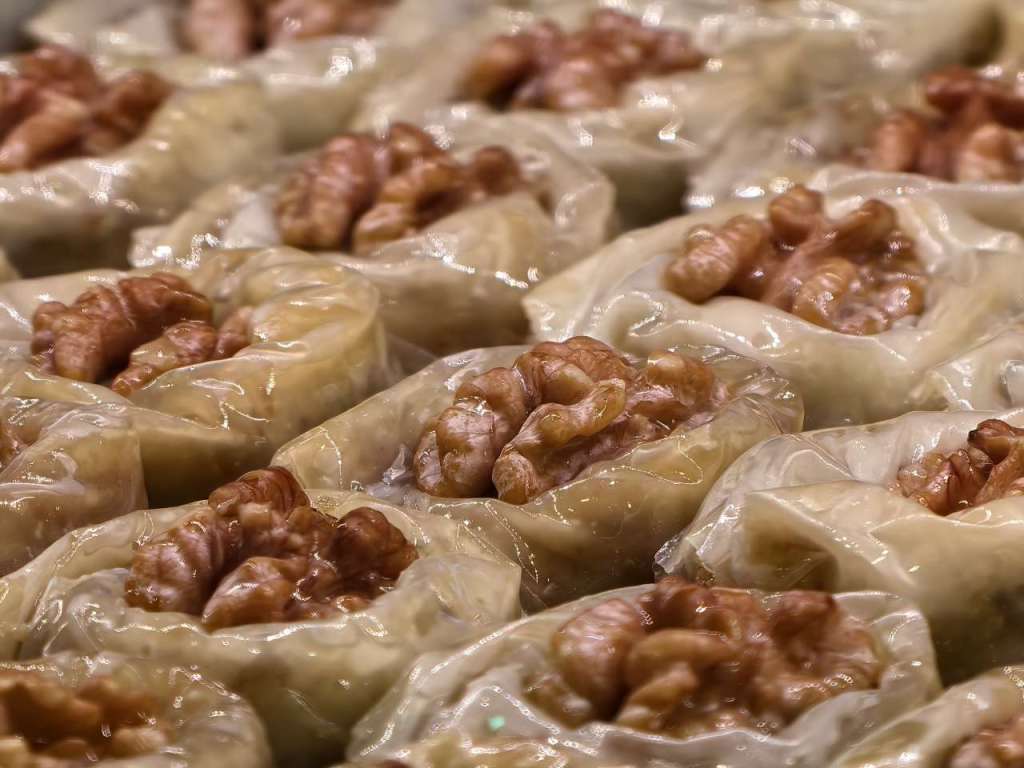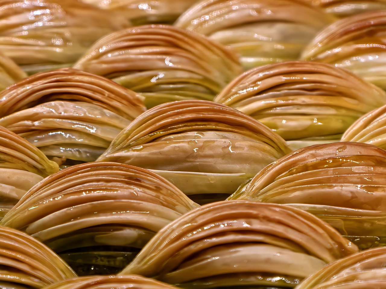 Desertul meu preferat, fistic, alune sau nuci, zeci de straturi de foitaj mai subțire ca mătasea (40 se pare), inundate în sirop de zahăr, unt topit, zeamă de lămâie și orice altceva îi poate da gustul divin.