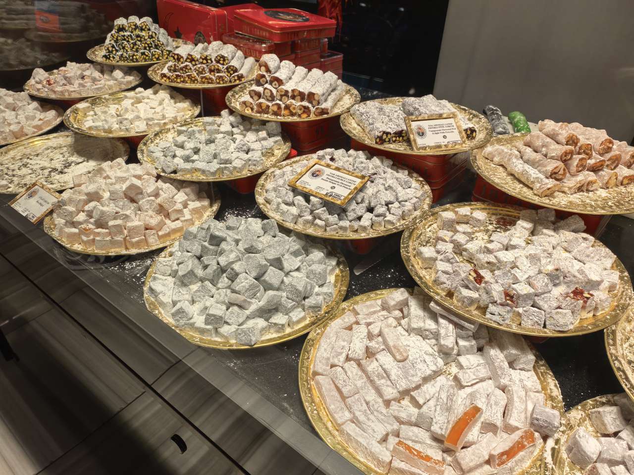 Un singur regret am. În urmă cu mulți ani, pe vechiul aeroport al Istanbulului, în zonele duty-free erau tăvi peste tăvi de turkish delight, din toate soiurile, neamurile și rețetele posibile, din care am gustat atunci până m-am săturat. Pe noul aeroport a dispărut complet acest bun obicei cândva tipic istanbulez iar prețurile cutiilor cu bunătăți sunt duble, ba chiar triple față de ce am văzut în oraș.
